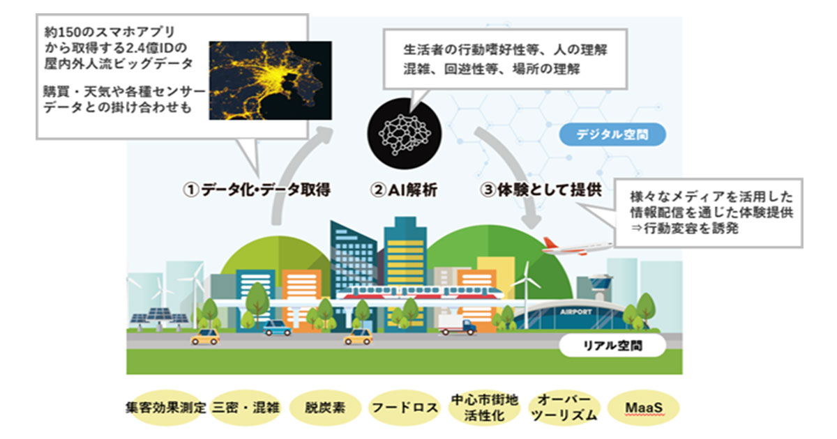 取得した人流データにAI解析を加え、生活者体験DXサービスを提供