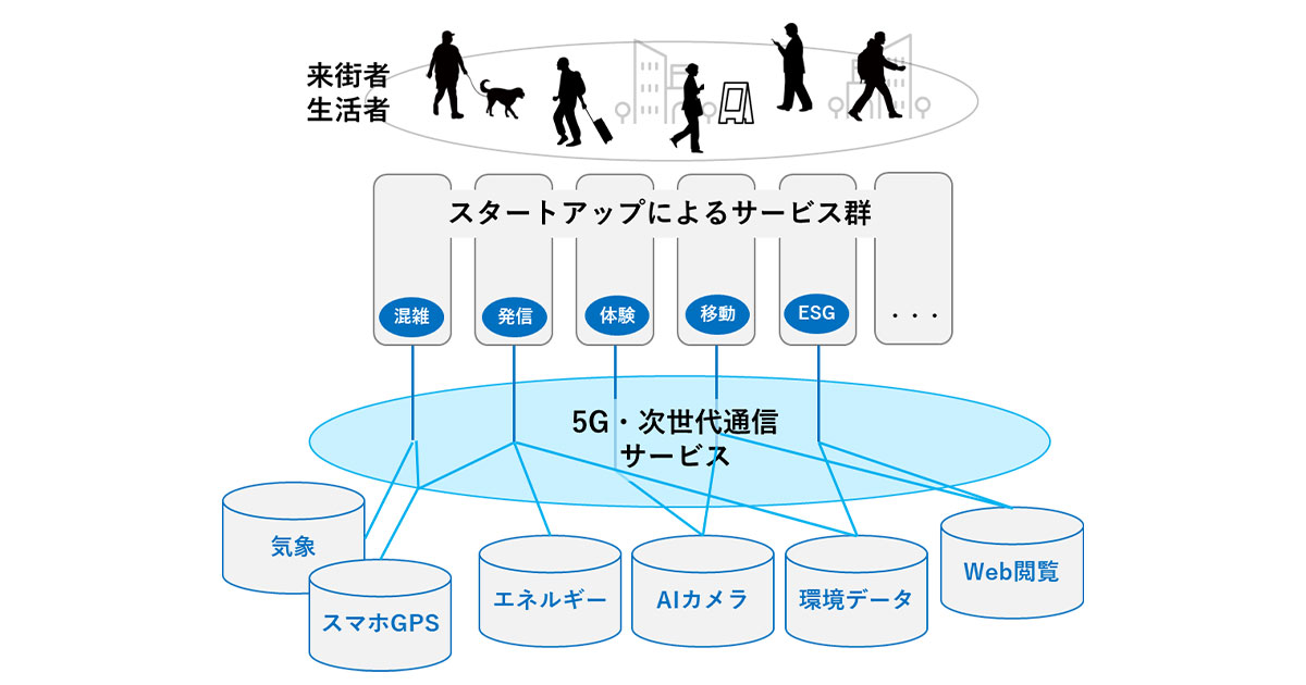 リアルタイムデータのサービスへの利用ハードルを下げるデータエコシステムの構築支援、通信インフラ共通利用設計による低コストな通信環境の実現など持続可能な「データ」「通信」インフラの型をつくることを目指します。
